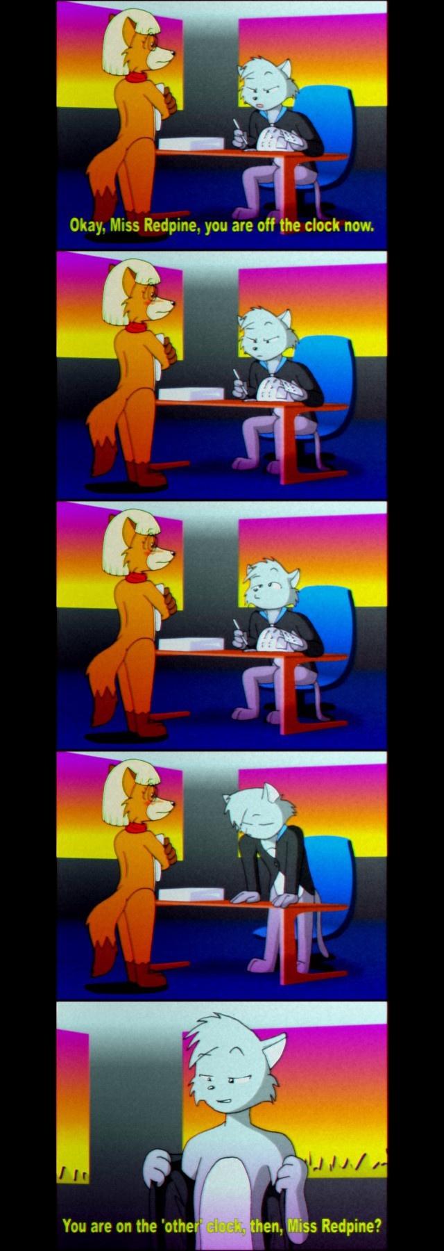 This episode had Miss Redpine's secretary job dismissed for the day, but she has other jobs she wishes to do for Slatz Cat...