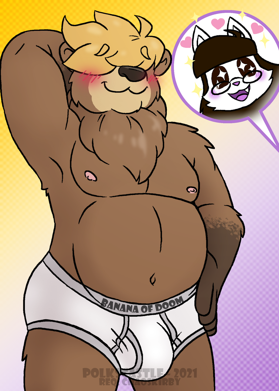 he very much is and he is gay too ;3 not the biggest down there (his balls make most of the bulge ) but not every guy has to be hyper endowned (also i like the idea of furley being the sub despite bigger dick X3)