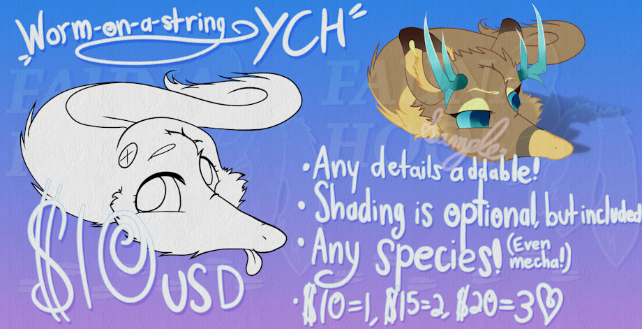 worm on a string YCH to cover an important incoming bill! info within artwork to show details ^^