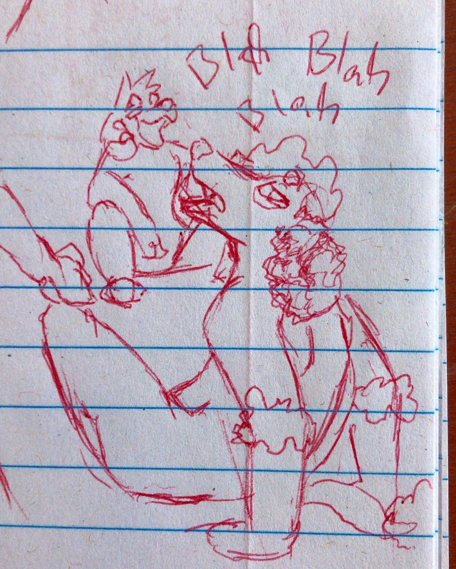I doodle in class but never post anything! So here. I’mma do another one of these too. Lots of Russell the poodle and Joel my red panda!