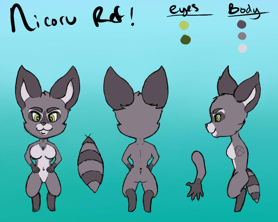 Raccoon female who can be a cub or a chibii depends on what art she in and how big her breasts are,