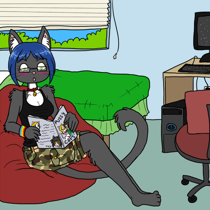 a very cute kitty reading a very sexy magazine might develop a glasses fetish if ya keep drawing cut
