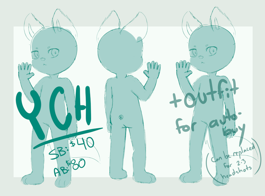 autobuy will include another front view for an outfit, or if you dont want an outfit i can replace it with 2 or 3 headshots/expressions for you