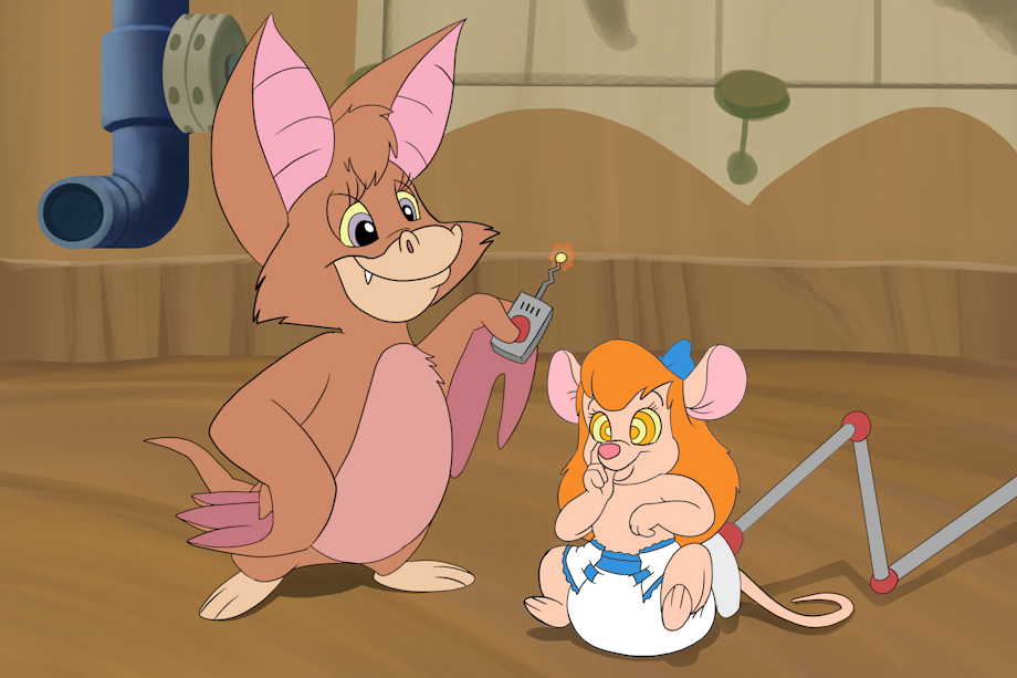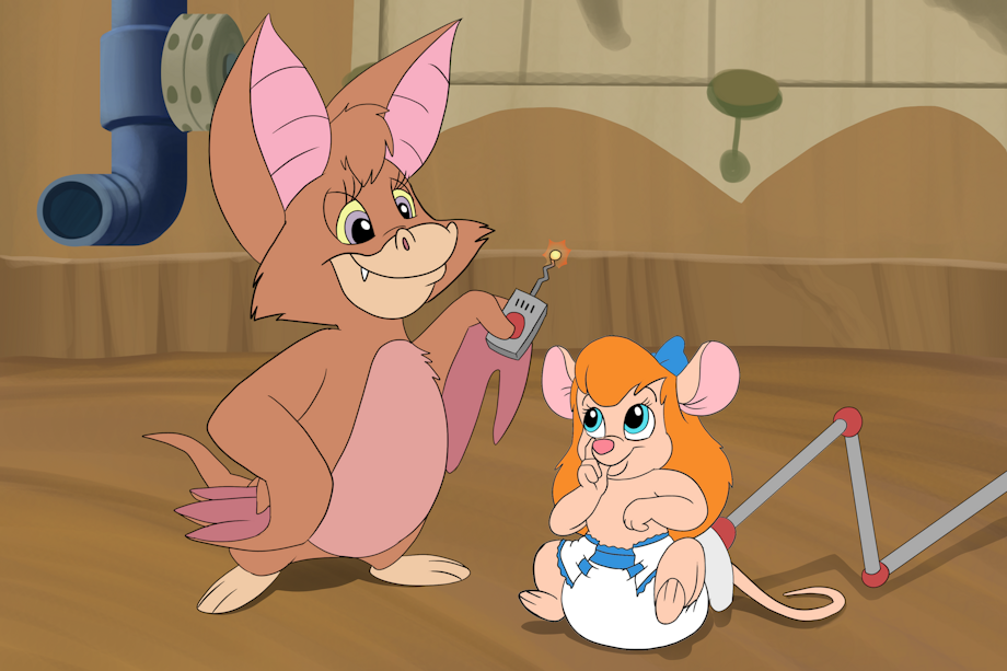 Looks like the Rescue Rangers' friend Foxglove found the remote to one of Gadget's latest inventions and used it on the feisty mouse, regressing her back into a blushy little baby. At least she's in good paws... and good wings too.