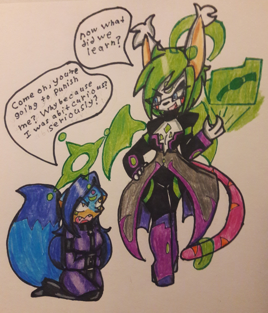 Second picture is of A.I. Punky trying to take a peak in Zaki's NSFW Content only to get captured by Zaki.