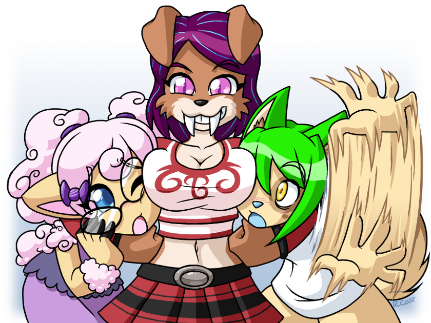 Nickie giving her smaller palls headlocks.. poor them! Rinnsi looks like he'snot much enjoying it, tho, being blind and suddenly having your face smooshed against warm round squishy...wait, why wouldn't he like that?