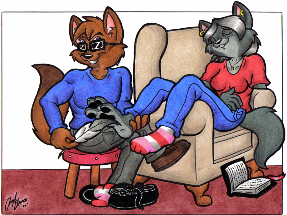 Sasha curled her toes as they lifted her heels again, not quite ready to surrender her socks. The pair took each by the cuff and drew them slowly off, savoring every moment as the soft cotton slipped over her furry feet... ______________________________________________________________