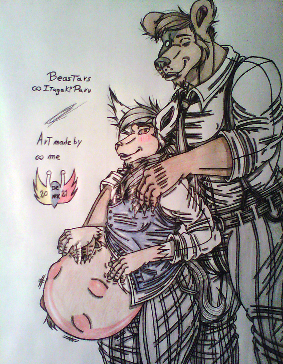 This is a drawing I made of Riz and Tem (characters from the Japanese manga and animated series "Beastars"), who in an alternate universe coexist as a happy couple. And also, they do not wait to see their future offspring arrive on the way (of course, all this would be possible, if a certain person had continued taking their special pills and honey).