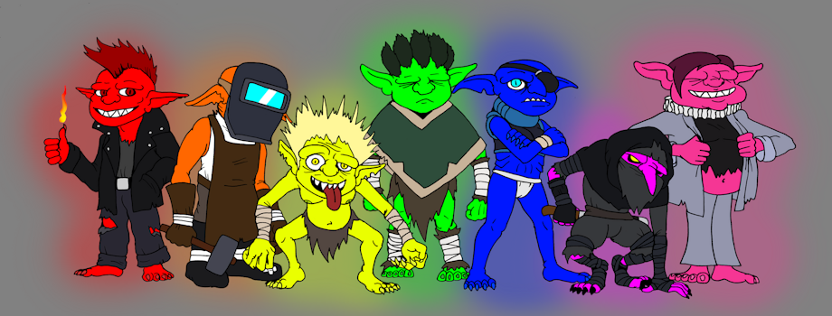 The Neon Goblins believe themselves descents of a white race of Neon Goblins and the Old Goblins. The Whites were these perfect beings that the Old Goblins grew jealous of. So the Old Goblins decided to rape and slaughter the Whites, giving birth to the Tainted Neon Goblin races. The Whites combined their power to split existence into three realms. One is a heavenly paradise where the Whites live, One is a dark and cold place where the Old Goblins live, and the last is the Realm of the Tainted.