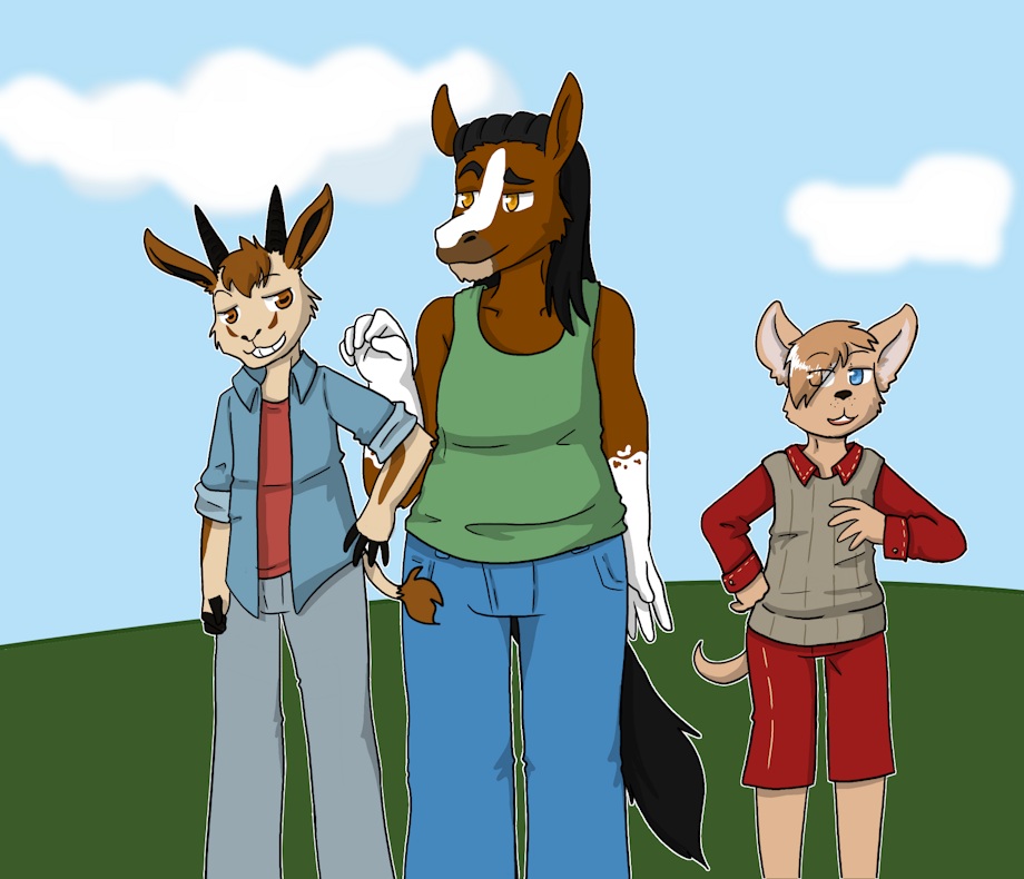 Clyde(Center) - Scottish(only a slight accent) - Clydesdale(Coincidence I promise) - Jason's best friend, they've know each other for nearly their entire lives, He has a bit of an ego, and has the attention of many of the schools female students and faculty, but he doesn't have their attention, his eyes are on one person and one person only