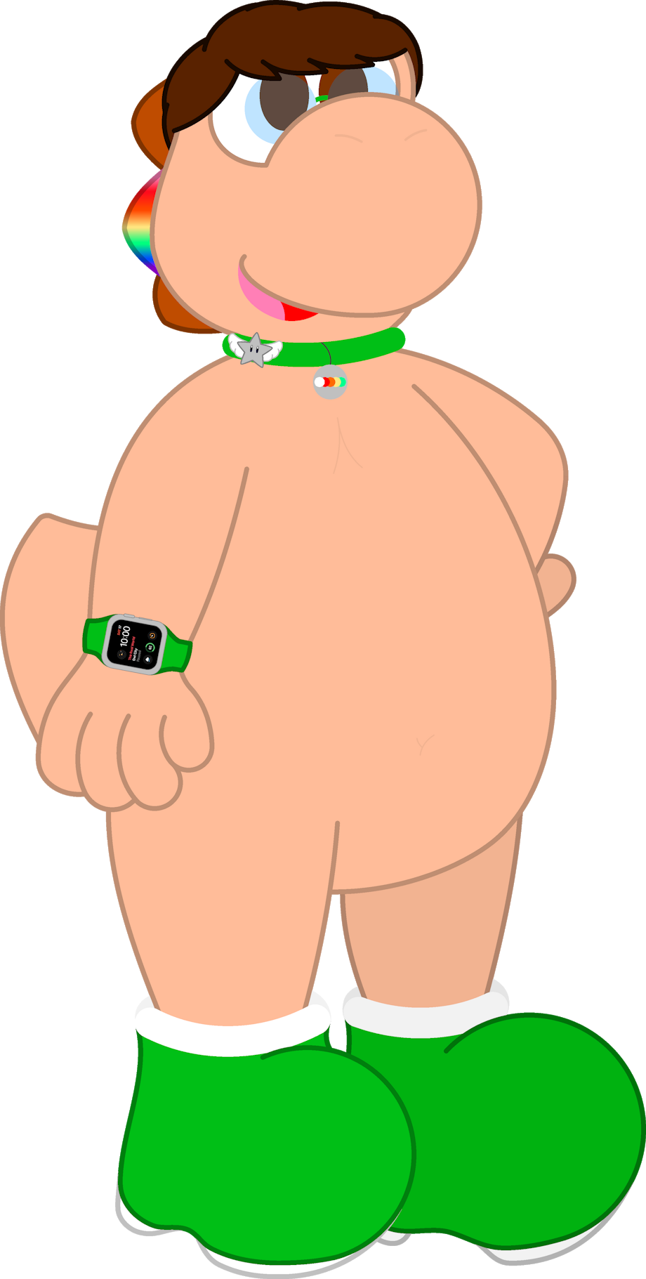 So for Doughshi, the color of the day is green! So the shoes, watch band, collar, and nose piece on the glasses have all become green for today!