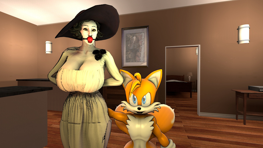 Whoa! Tails, you have gotten too bold! That is one momma you do not want to mess with! Wait...oh, I see. False alarm. Tails has it all under control with Lady Dimitrescu.