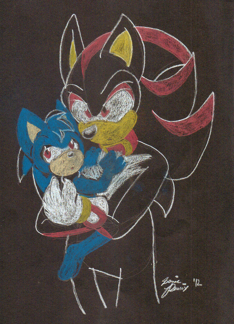 This is a pastel art piece of Shadow and his son Sonie (Sonic was the one who gave birth).