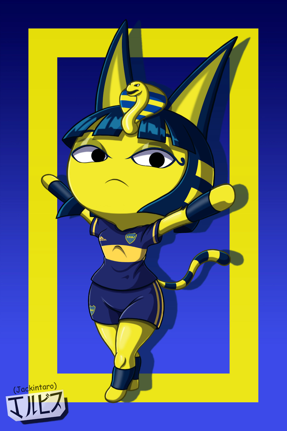 I made this drawing of 1 Gou/Kid Cat and Nile/Ankha wearing River and Boca uniforms (Two Argentine soccer teams that are rivals) for my partner. Neither of us like soccer but it's funny to see anything dressed as Boquita el más grande XD?