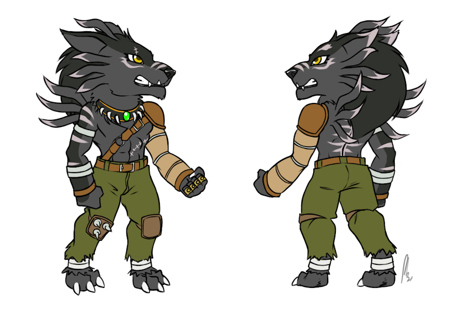 Stream commission foor Rokoka, of a modelsheet for their OC Syn, as a shortstack WereGarurumon (Black).