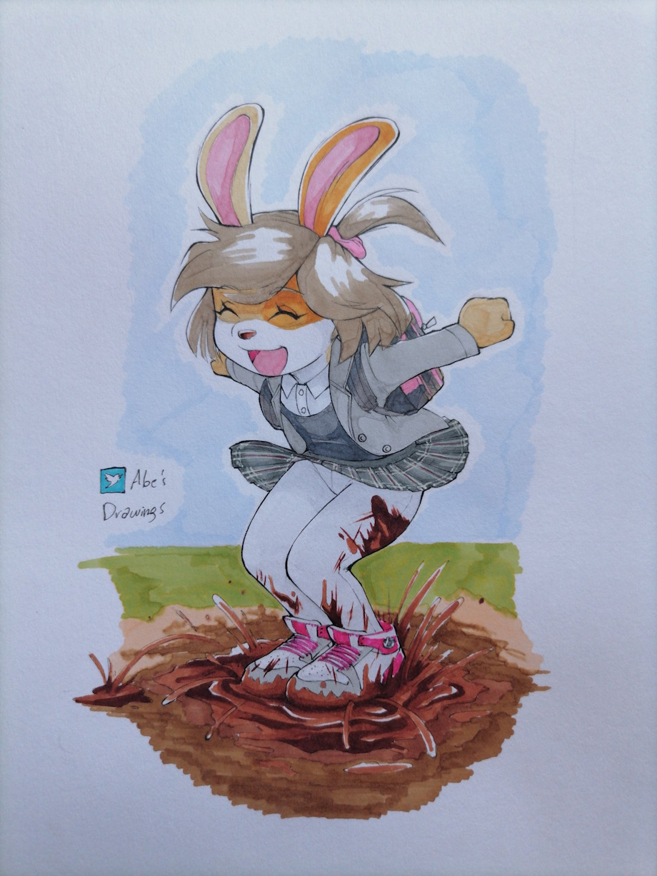 A big muddy puddle! Miyu + clean shoes + mud = fun! She jumps into the puddle, covering her shoes and her unifrom in mud!