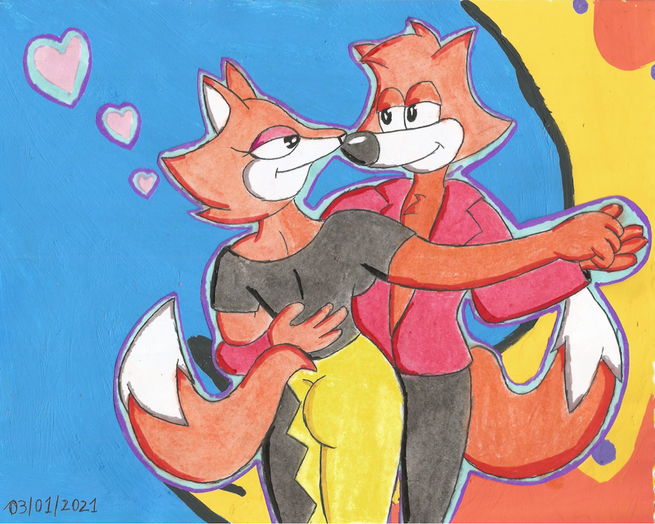 Fauna Fox and Spy Fox make a very good couple together. The drawing is about the two of them dancing flamenco rumba. Based on this video: https://www.youtube.com/watch?v=4FdKK5go4Mo