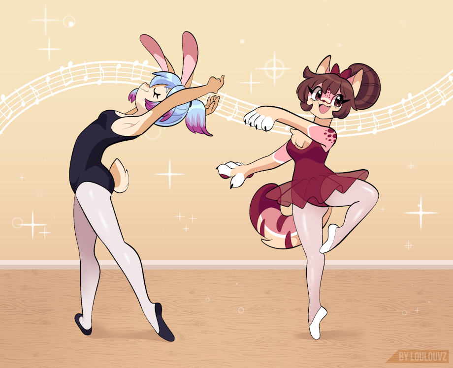 Fraise loves to dance; ballet is her absolute favorite. She has numerous of one colored leotard, several pairs of nice tights, and 10 pairs of pointe shoes. What's this? Someone decided to join her for this session. Meme loving Mochibun straps on a leotard for the first time to join Fraise in this graceful session.