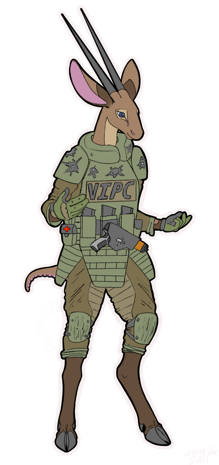 Some dnd friends encouraged me to draw my loper in ballistic armour. The helmet of the set doesn't fit, with those horns and what not getting in the way.