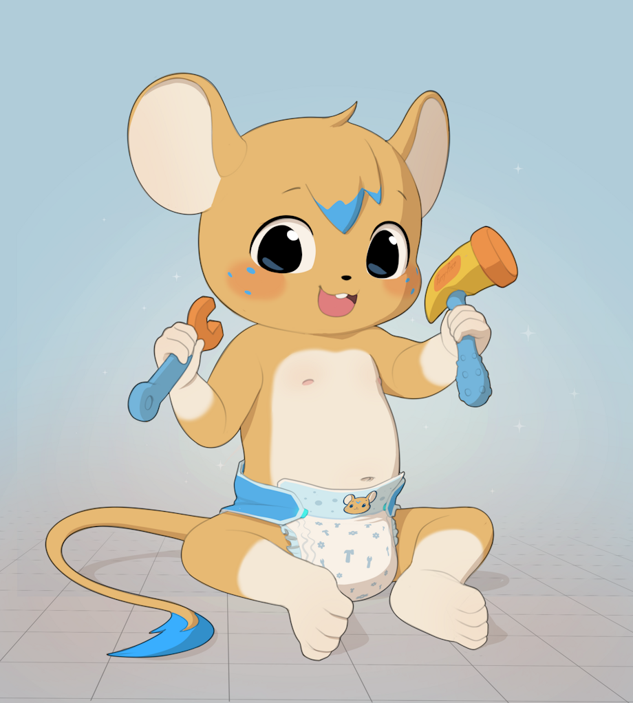 Nice blue clothes he has <3 the diaper pattern really suits him XD