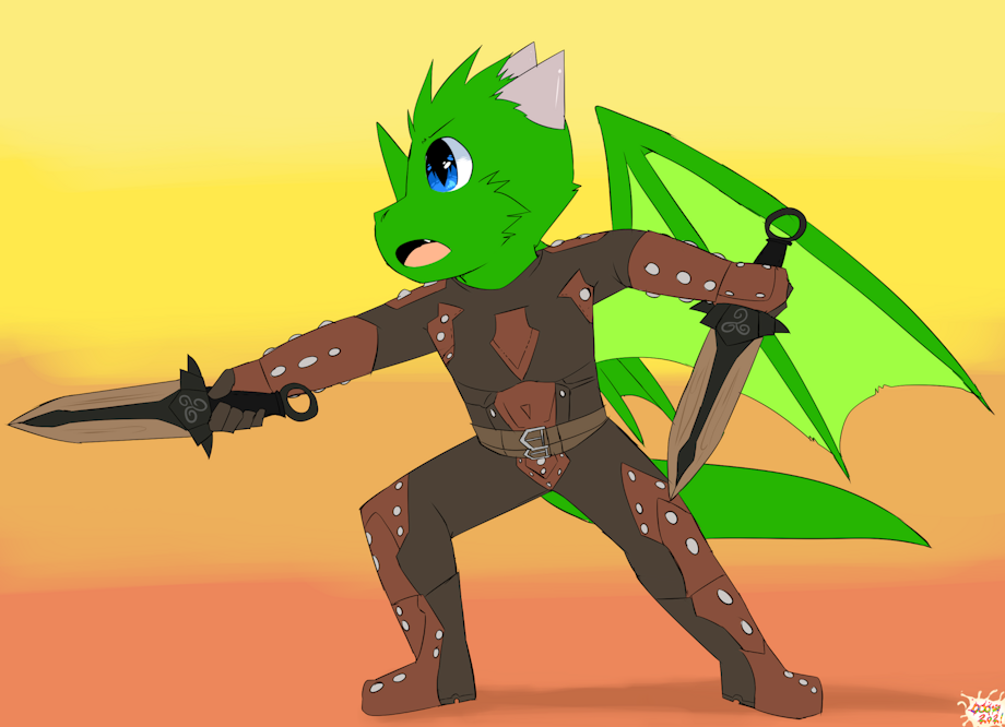 Colorsketch for @ManaAraxis of him doing a little skyrim cosplay with a dualwield! :3
