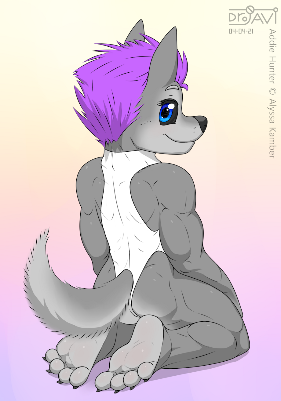 My extremely strong wolf pup, Addie Hunter (already drawn by Javi) sitting pretty.