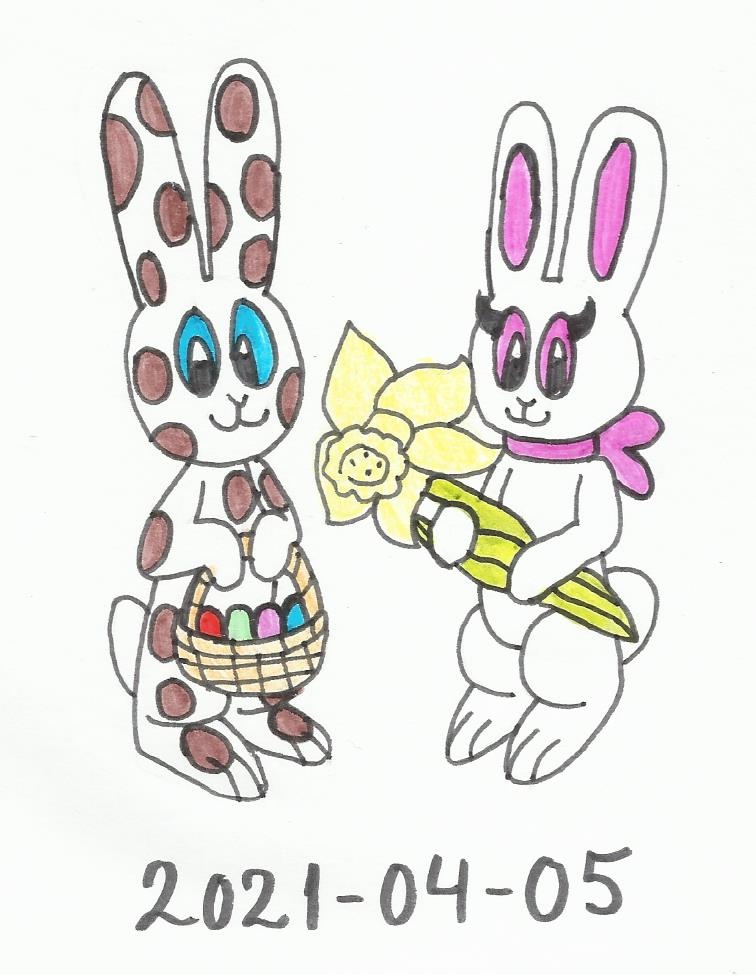 I know it's late for easter but I drew this art anyway. And I drew this art as a tribute for Spotty book by H.A Rey and Margaret Rey. The couple behind the Curious George. And Spotty's sister Rosie is holding a daffodil as an Easter symbol flower.