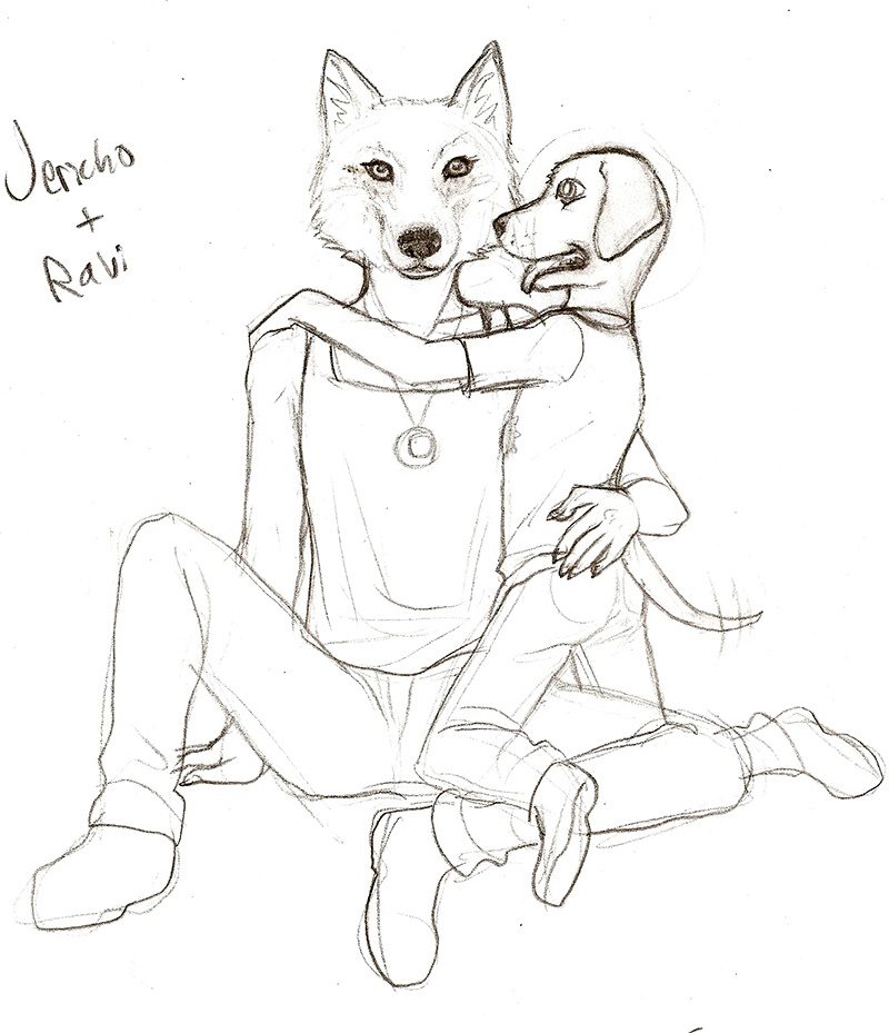 Jericho is a grey wolf and Ravi is a yellow lab. Their names mean moon and sun respectively.