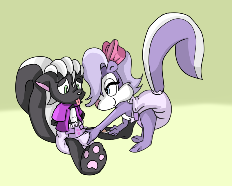 FINALLY! I've been waiting for someone to diaper that purple skunk! Thank you! She looks so cute in