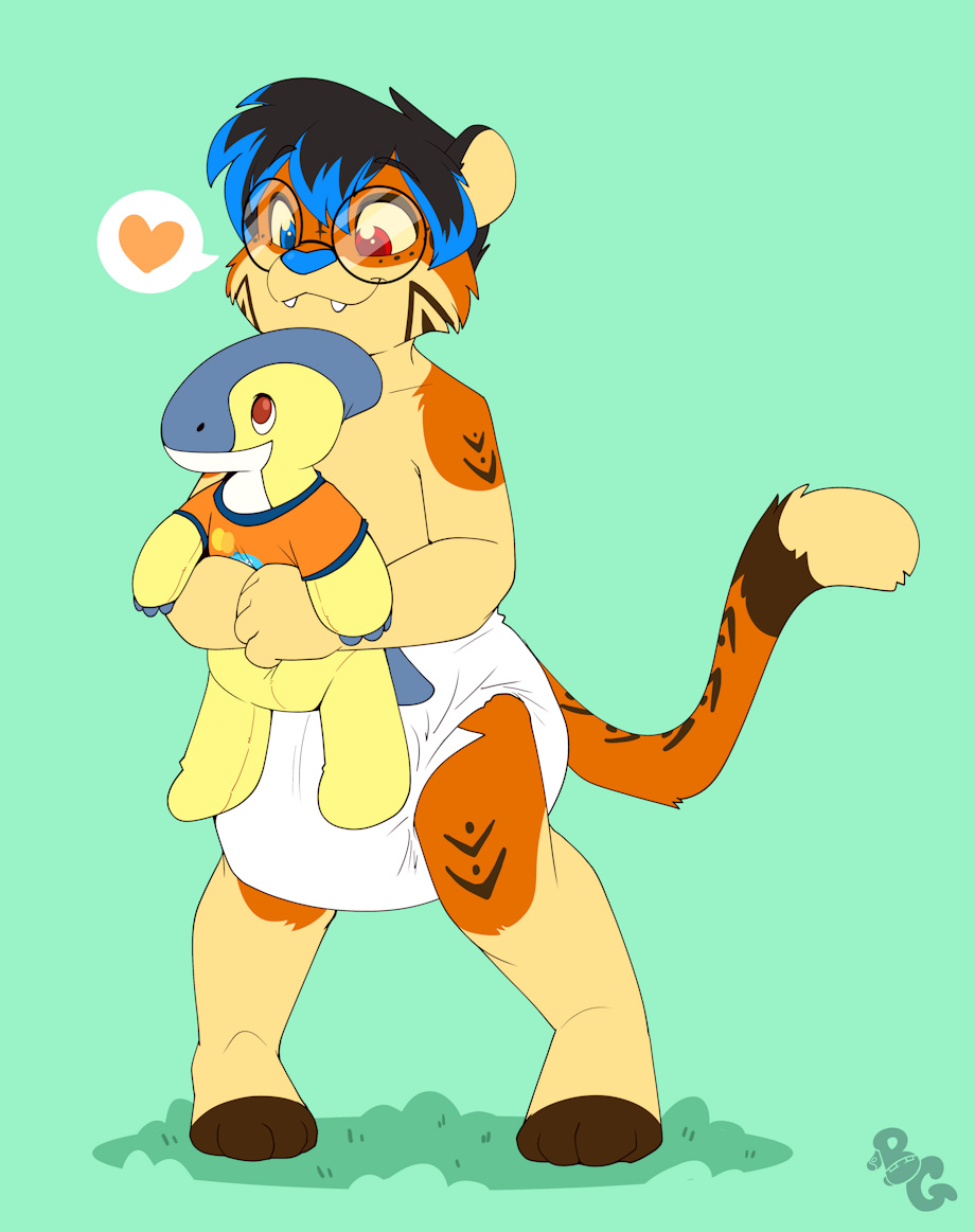Nothing better than a poofy diaper and your plushie friend! ^w^