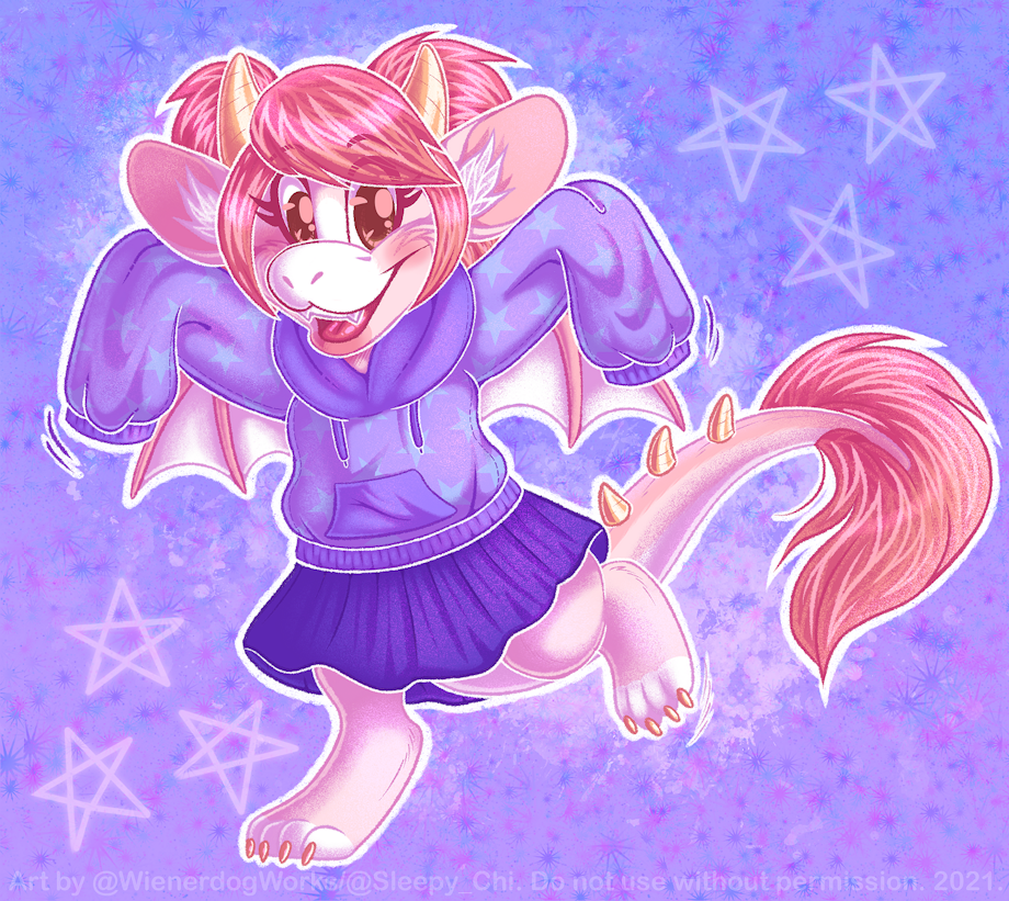 I thought I recognized that little cutie! Strawbs' new dragoness is such a cutie, and this is so utterly adorable! I love the oversize jacket and just how wonderfully happy she looks. Your coloring work and the detail on her hair and tail tuft is so beautifully done as well, and just the whole carefree feel of this piece is a total delight. Great work on this!