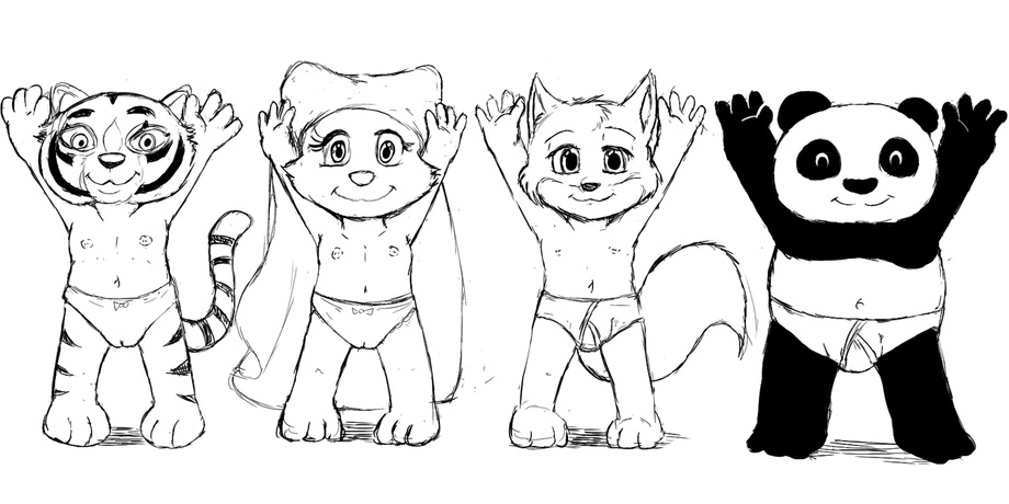 tigress, po ( kung fu panda ) , maid marian and robin hood as little cubs