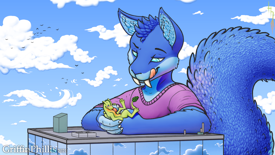 Here's me and my wonderful pal Saber! If there was a part 2 to this, you'd best believe that this giant saber-squirrel decided that they were... feeling a bit peckish, I'd say~ <3 This was fun to draw! Was nice to refresh myself a bit on digital painting again, too. :D Thanks for looking. <3