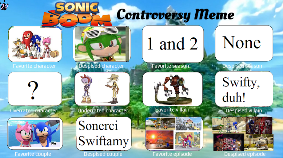 This the my new version of my Sonic Boom controversy meme. This is the same Meme by a deviantart named RedFlareTomboy. Too bad that meme doesn't exist anymore. Sorry if I recycles some things from my old meme due to my laziness. Boy, this is going to be a long description.
