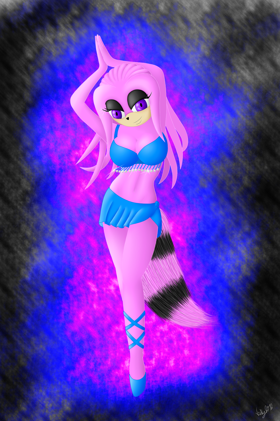 this is my main character Harmony she is a pink echidna and she loves to dress up in diffrent outfits this time she is a belly dancer