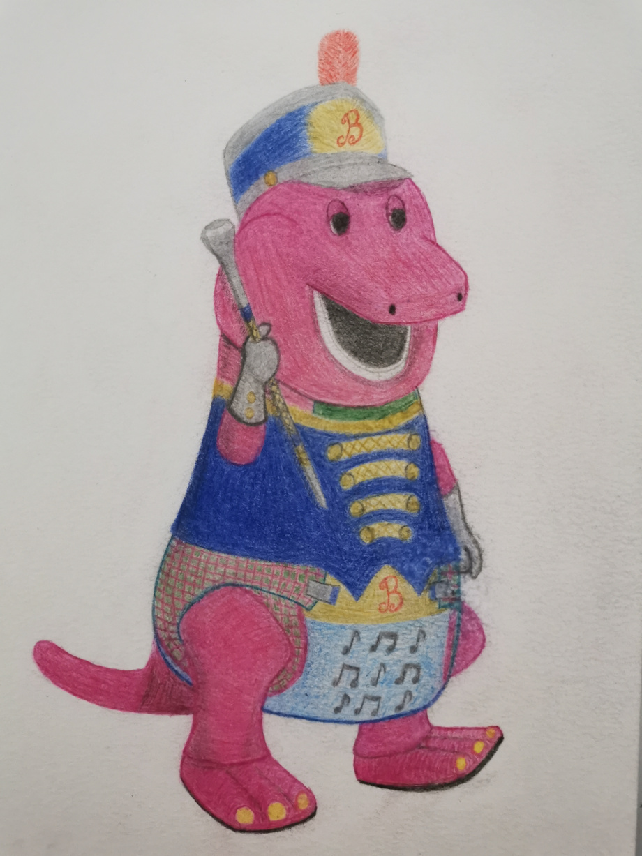 , it lead me to be inspired to draw Barney in his band uniform as a Bandleader Daddy.