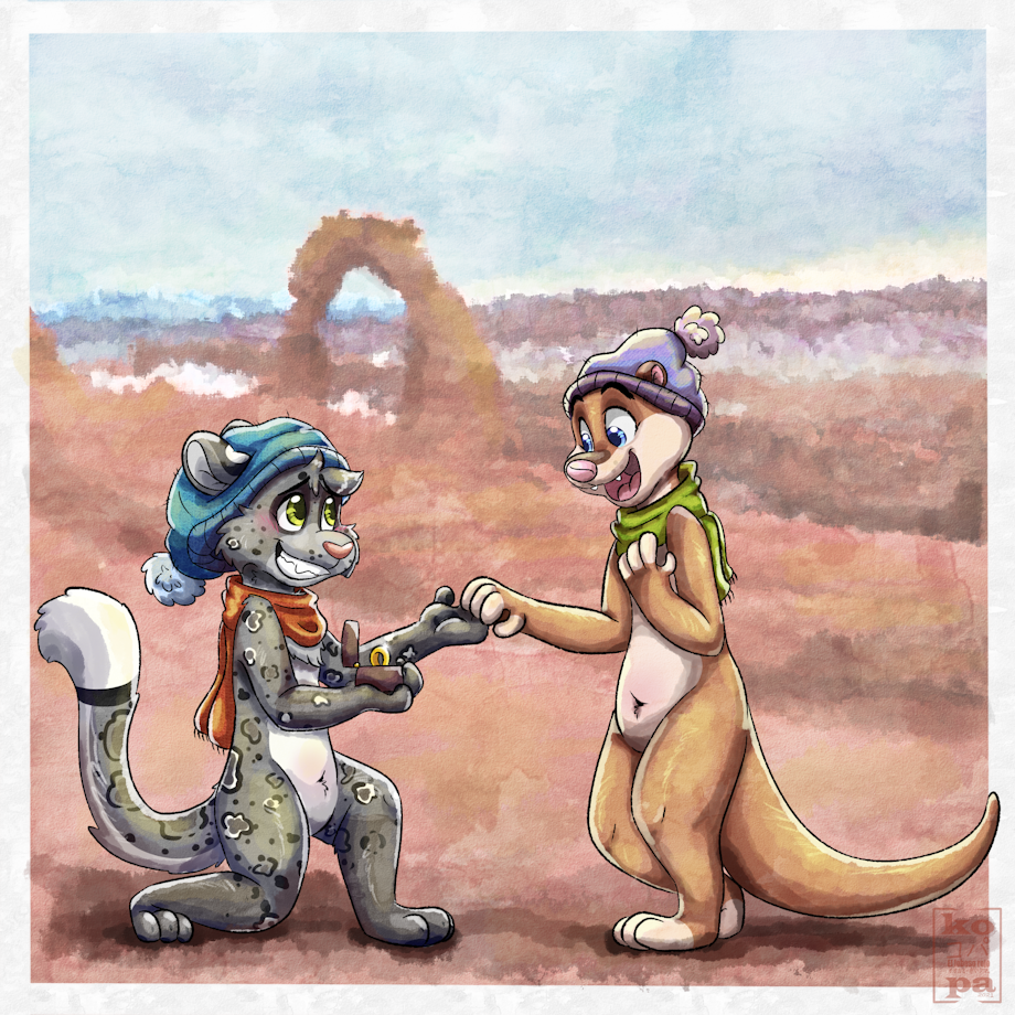 hi, commission finished for @AndySnowLeopard, I hope you like it very much. "Umm .. do you .. want .. marry me?" a beautiful way to ask for marriage. It is mega cute. thank you all for your support. If you like my work you can help by sharing. https://twitter.com/kopaOkami/status/138387666348254003...