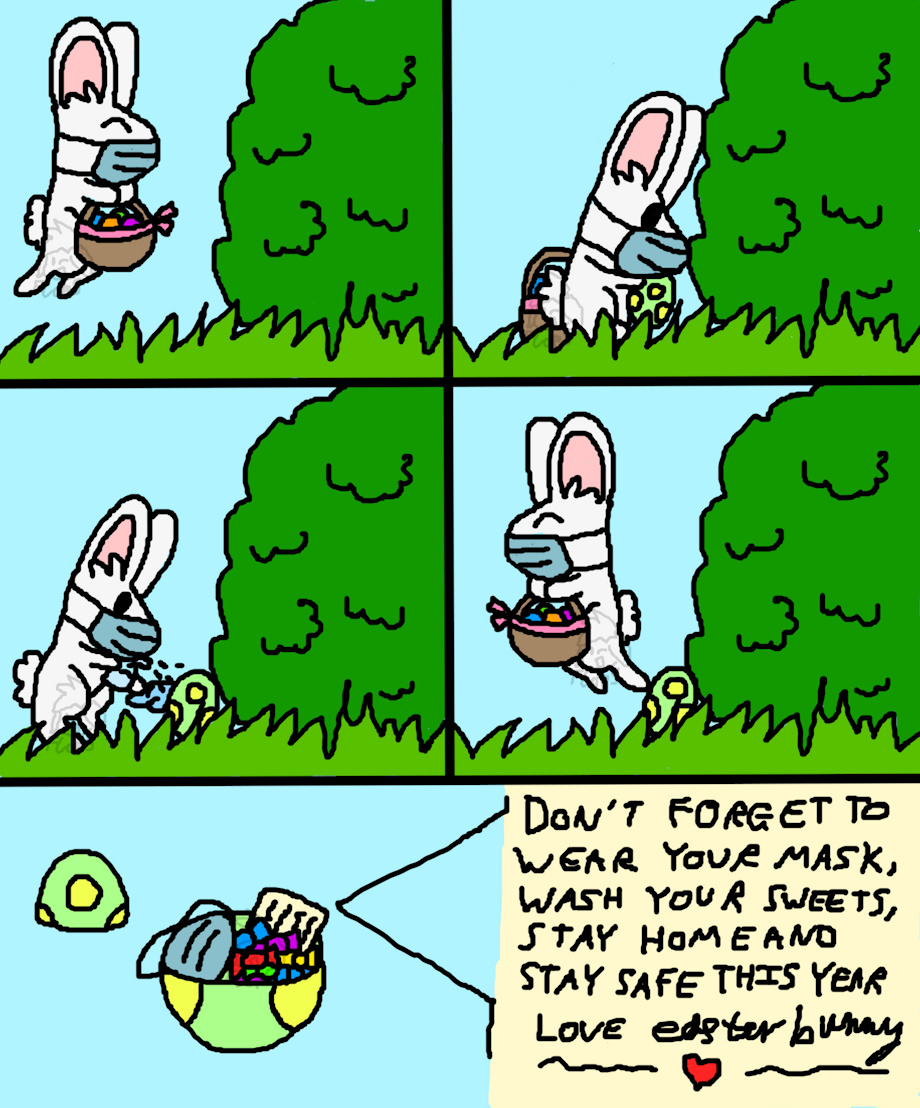 this is a just a nice message i wanted to send to everyone on easter this year. just because things are harder this year doesn't mean we cant have fun but we still need to stay safe everyone ,3