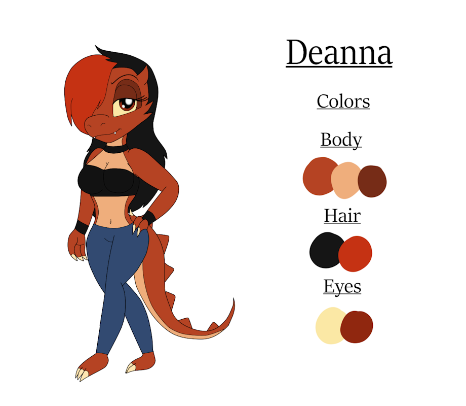 Deanna is the daughter of Dragaunus. Her father is rather protective of her since she's his only offspring. She is often rebellious and likes to do her own thing. And in case you're wondering, she does have her right eye; her hair just covers it.