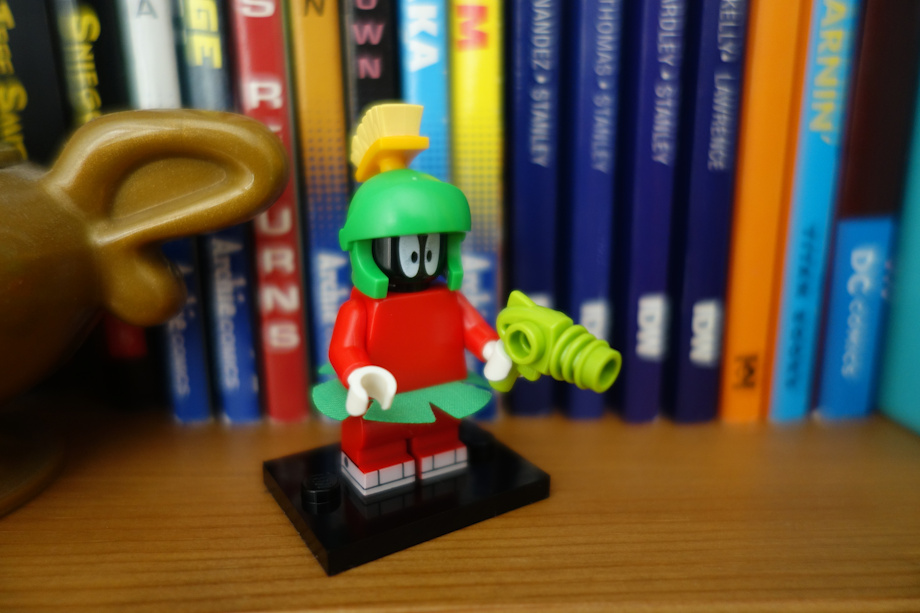 I may not be interested in Lego to be honest but since I went to a toy store outside my home town when I was looking for some interesting stickers for my notebooks, I saw display of Looney Tunes Blind Bag or Surprise Bag Lego figures. Too bad you can't always expect to get what figurine you want. So, I felt the shapes of the lego figures in the bag carefully without tearing it out. I felt the brush on Marvin's helmet. And when I came home, it was the right figure I have chosen. I placed the Marvin figure on my bookshelf next to the Genie lamp, Boom version of Sonic The Hedgehog and Mickey Mouse. I was so delighted and overjoyed to get what Looney Tunes character I want.