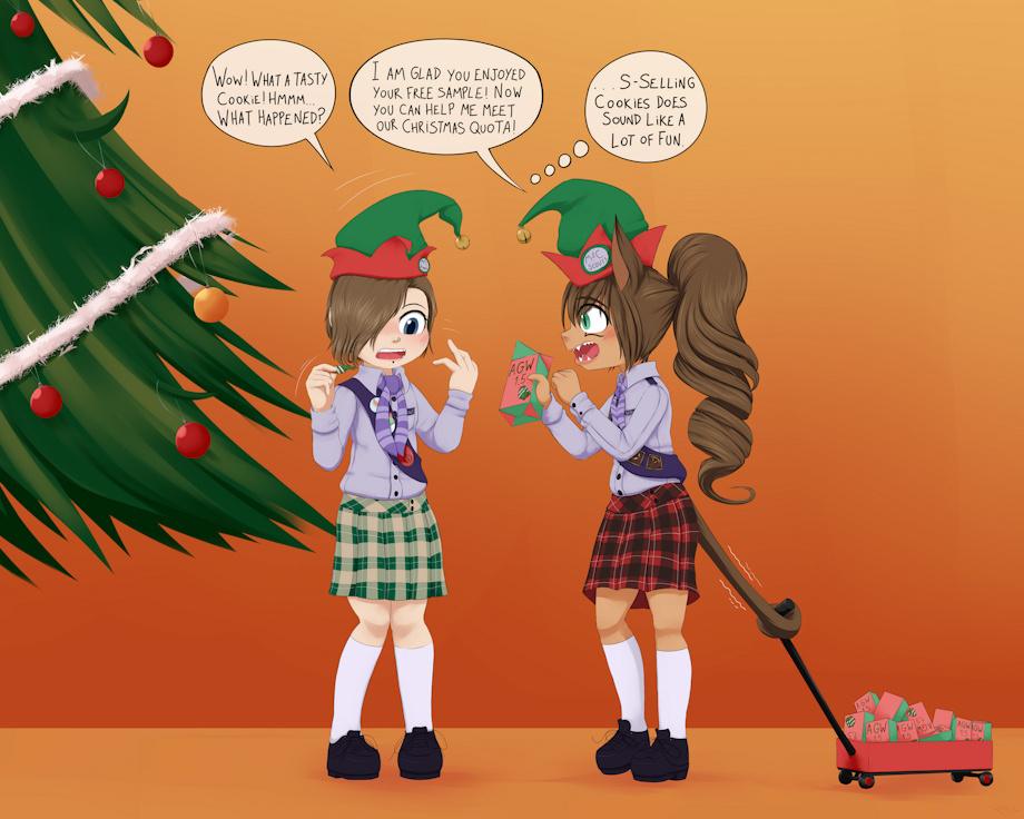 The story showing their adult male Miqo'te character getting transformed into a cookie-selling Girl Scout. And eventually growing accostumed to it and actually preferring being a cutie lil' cookie seller to an adventurer. And eventually bringing in a newcomer to join the gang.