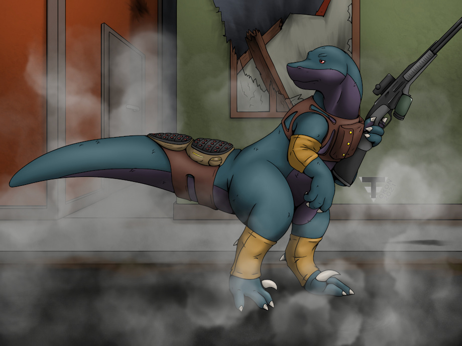 Just some more of art of this dino fellow. Now with 100% more guns! Cause gun carring dinos is cool.
