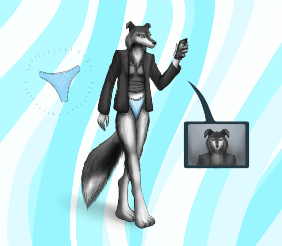 The last thing technically was her suit pants, but her own camera never showed anything past her chest, and there never would be a reason for her to move her phone any lower than it already was. The collie hated to admit it, but she could very much stay at this meeting with her top dressed up nicely, and just yesterday's pastel blue floral panties adorning her hips. She stood up, heading to her work desk, actually finding the breeze between her legs and mobility quite pleasant, taking a seat as she started her laptop up.