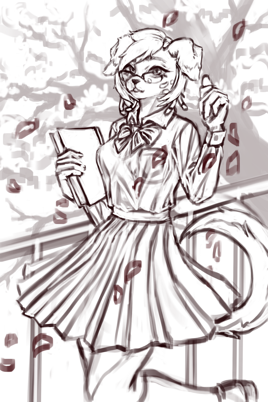 Petals twirl eloquent ballads Reflected in a koi pond The saluki girl rushes, great haste Not a moment to waste, you cutie-face! Green outfit worn with persecution For a storm broods over the horizon The saluki, glasses fitted, textbook in hand, Will walk towards the dawn and the petals Will Fall For Fall.