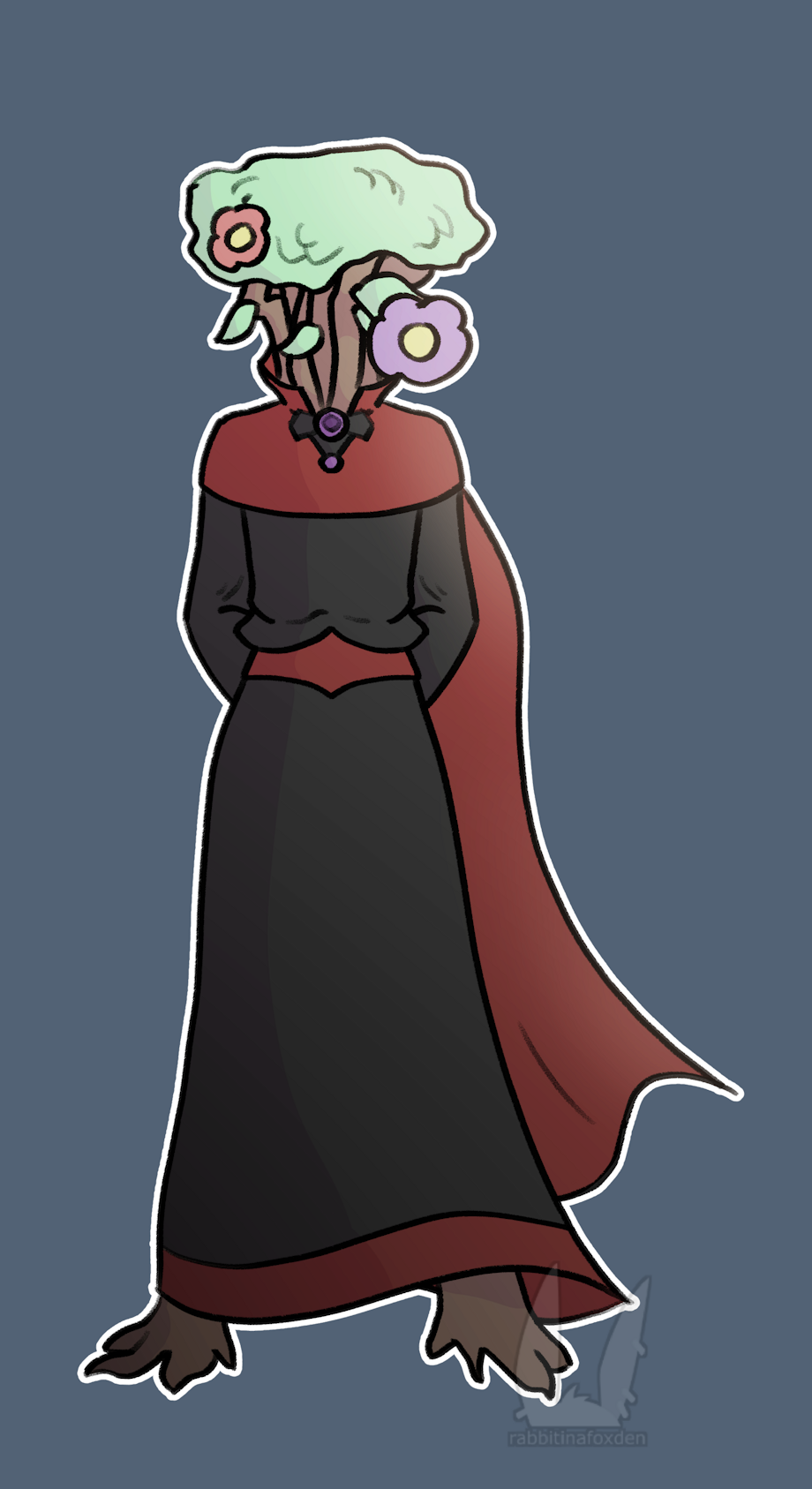 This idea actually came from my friend Luna, who saw this person in a dream! They're a professor at a magic school. You know those magic schools: the campus had a lot of latent magic floating around. So they probably shouldn't have been surprised when they put up a job posting and the tree in the courtyard walked up and applied! Technically, they are the school's oldest alumni: every time a student did their homework under their branches, they were watching!
