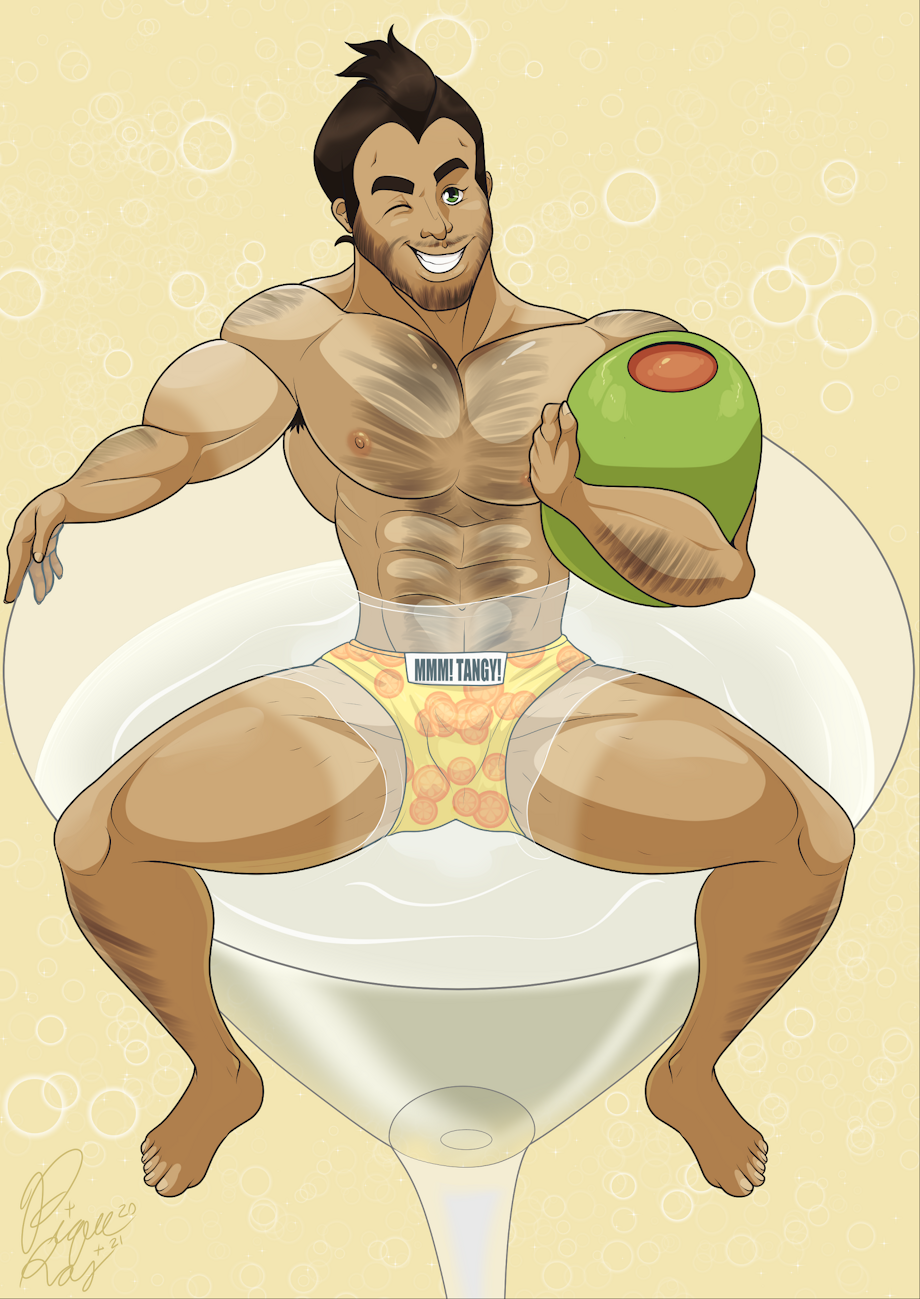 Continuing my Cinco De Mayo tradition of drawing my OC Freddy Hernandez modelling nude in food, now including Speedos!