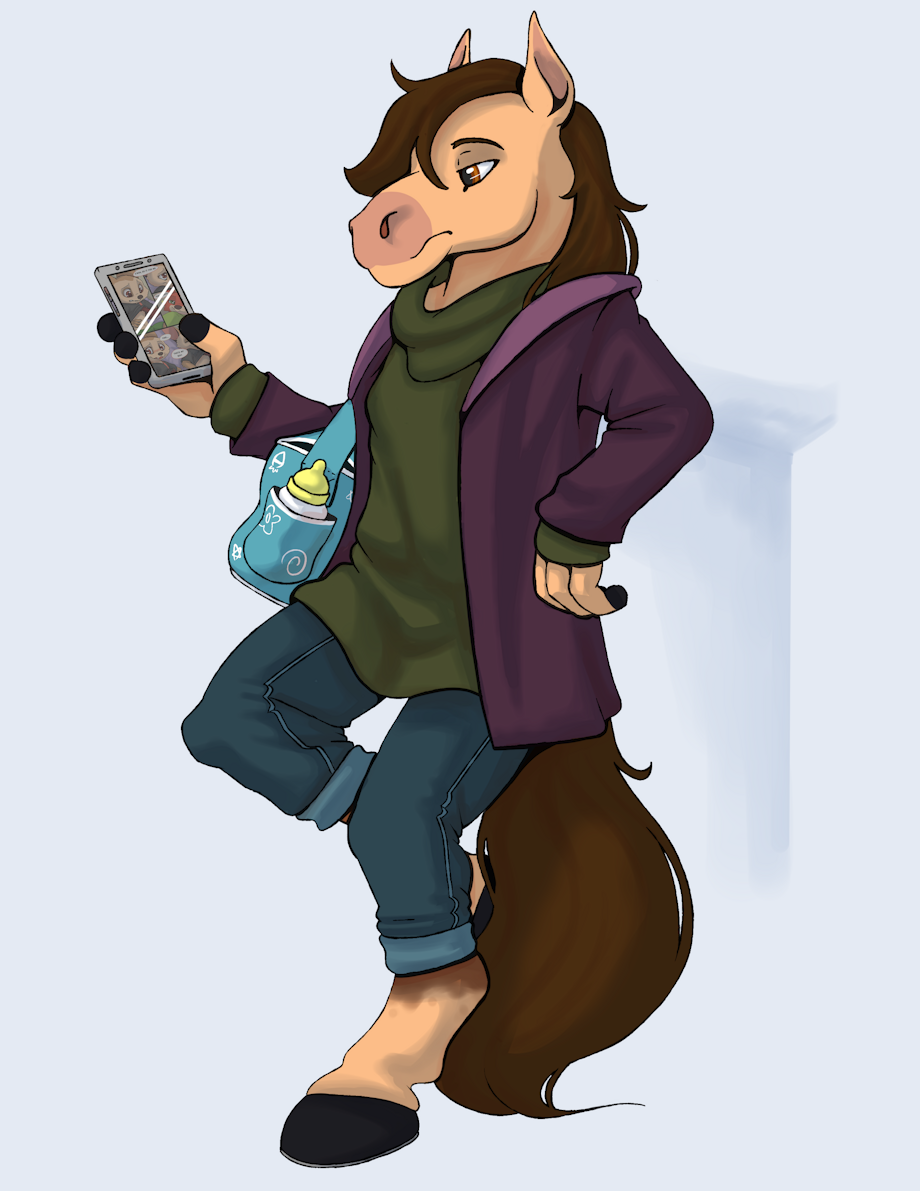 Here we see a Daddy Horse out in his natural Habitat, waiting for his cub to finish in the playground