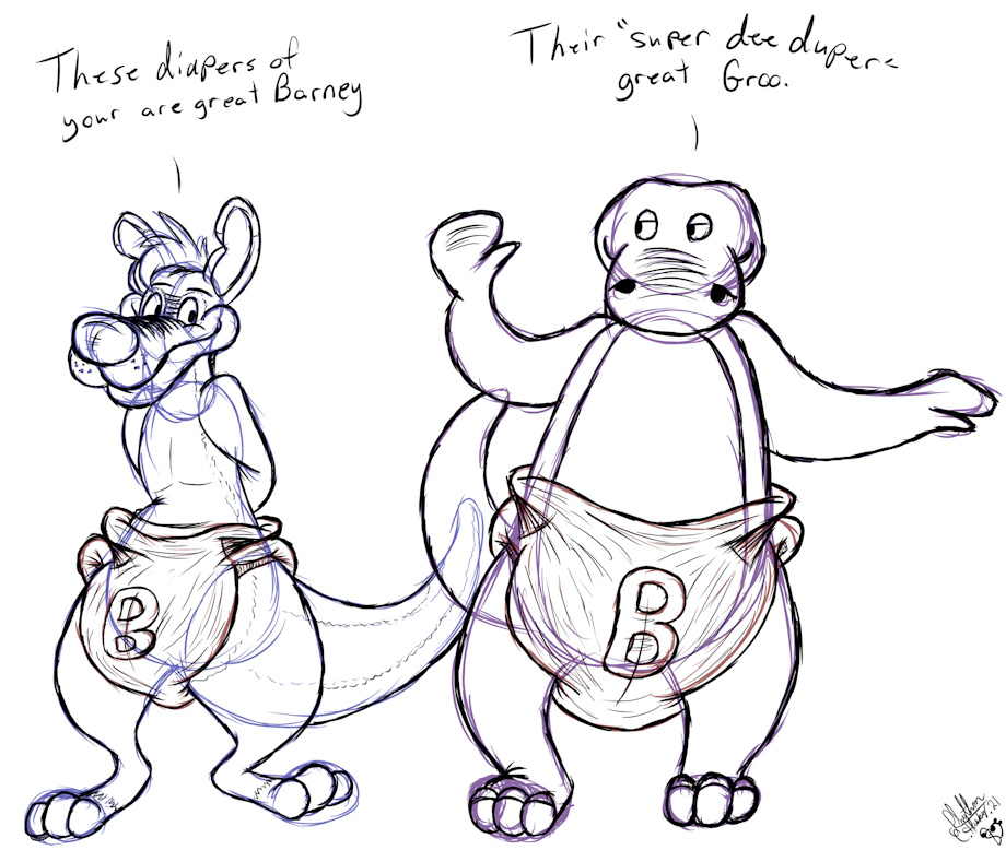 you know I think that's what we're going to be the naming them "Super Dee Duper Diapers" and I'll make some "Stuuuupendous Diapers to go along with them since those are Barney's catchphrases in my next drawing I'll do to showcase them along with clothing accessories to match.
