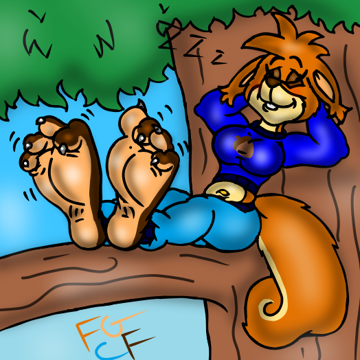 Revamp pic i felt like doodling featuring my red squirrel gal Shelly resting whilst wiggling her tootsies in the tree based on this old pic i did a while back here^^.