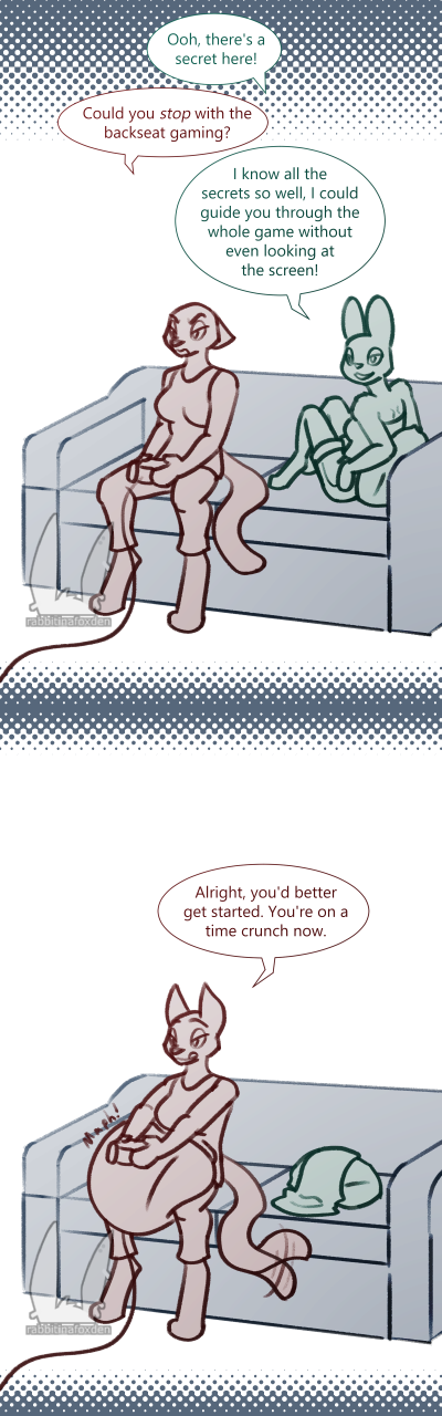 You really shouldn't backseat game, especially when the player is capable of eating you and your ankles are within grabbing distance.